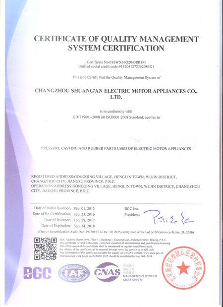 (企業通過ISO9001質量管理認證)